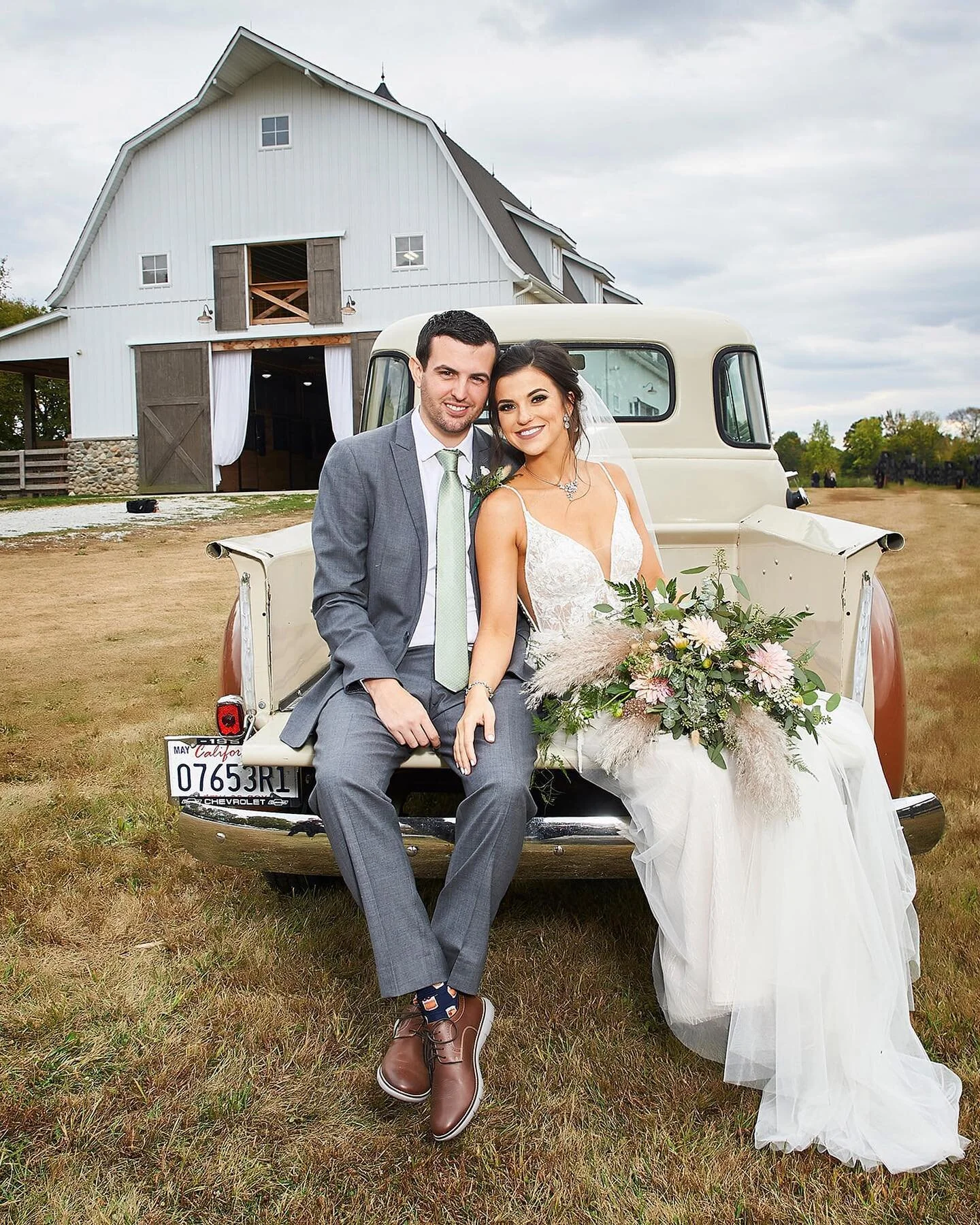 Couples have full access to the barn and surrounding area for the entire day of the event or the full weekend, if our exclusive weekend access option is selected. The barn is heated and includes climate-controlled, handicap-accessible women’s and men’s restrooms. The rental includes a large heated and air conditioned bridal suite, complete with full wall of LED mirrors and vanity space as well as mini-bar and refreshment area, and grooms’ lounge and recreation area, including full-court basketball, pickleball and volleyball. We also provide a number of amenities, such as 12’ antique, solid oak church pews for your outdoor ceremony, 8’x30” folding banquet-style dining tables, wooden cross-back vineyard chairs, reclaimed elm farm tables for bridal party, reclaimed elm cocktail tables, large custom bar, several wine/whiskey barrels, several large wooden spool cocktail tables, and outdoor firepit. Propane patio heaters are also available at a reasonable rental rate when needed to take the chill off. And, our 1953 Chevy farm truck, 1955 Thunderbird convertible and farm animals can be used for photos, if desired.